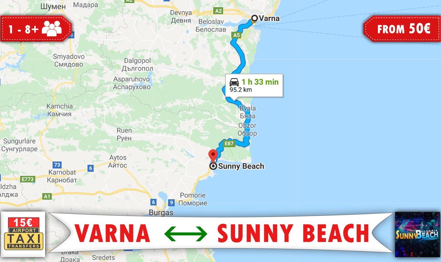 Our drivers are very experienced and they know the area very well. All of them have more than 5 years experience in PRIVATE AIRPORT TRANSFERS to Sunny Beach. They can answer you on most questions about Sunny Beach and Bulgaria.